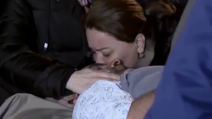 Bizim.Media xəbər verir ki, aeroportda ana Tehranda yaralanan oğlunun alnından öpüb.