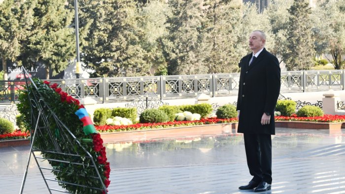 Bizim.Media xəbər verir ki, Prezident İlham Əliyev Xocalı soyqırımı abidəsinin önünə əklil qoyub, faciə qurbanlarının xatirəsini ehtiramla yad edib.