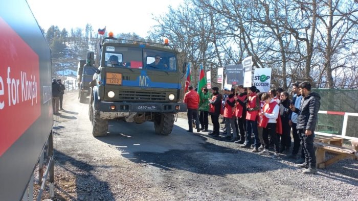 Laçın-Xankəndi yolunda təşkil olunan aksiyanın 77-ci günündə də Rusiya sülhməramlılarına və Beynəlxalq Qırmızı Xaç Komitəsinə məxsus avtomobillər aksiya ərazisindən maneəsiz keçirlər.