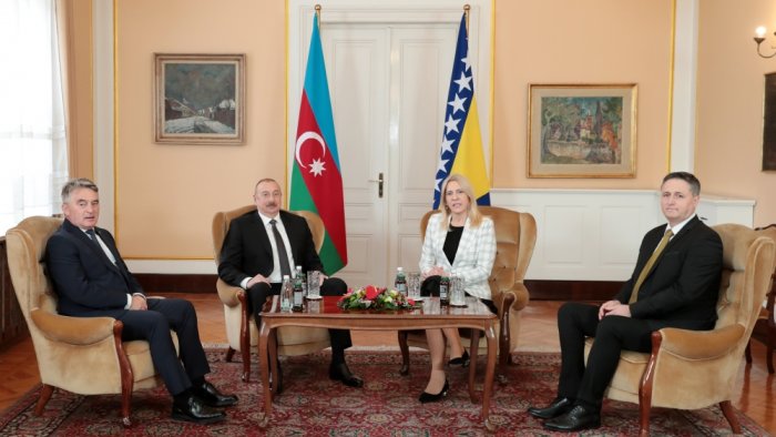 Aprelin 13-də Sarayevoda Azərbaycan Respublikasının Prezidenti İlham Əliyevin Bosniya və Herseqovinanın Rəyasət Heyətinin Sədri xanım Jelka Tsviyanoviç, Rəyasət Heyətinin üzvləri Jelko Komşiç və Denis Beçiroviç ilə görüşüb.