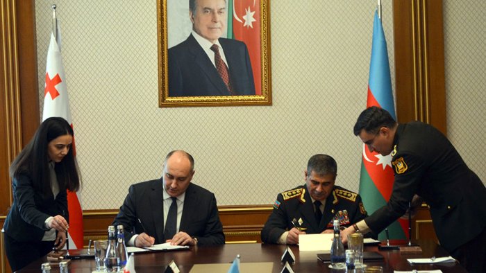 Geniş tərkibdə keçirilən görüşdə "Azərbaycan Respublikası Hökuməti ilə Gürcüstan Hökuməti arasında müdafiə sahəsində əməkdaşlıq haqqında Saziş" imzalanıb.