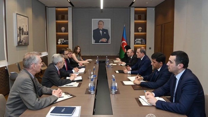 Azərbaycanın xarici işlər naziri Ceyhun Bayramov ABŞ-da fəaliyyət göstərən “Xəzər Siyasət Mərkəzi”nin ölkəmizdə səfərdə olan nümayəndə heyəti ilə görüşüb.