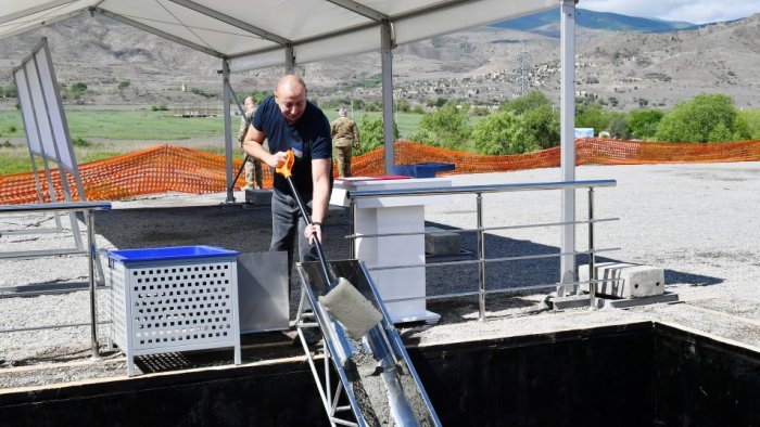 Prezident İlham Əliyev xəstəxana binasının təməlini qoyub.