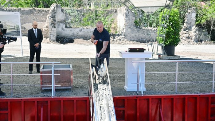 Layihə ilə tanışlıqdan sonra Prezident İlham Əliyev inzibati binanın təməlini qoydu.