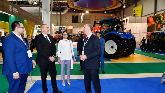 Dövlət başçısı və birinci xanım sərgidə “Grow Group Azərbaycan”, “Maschio Gaspardo”, “New Holland”, “Rostselmaş”, “MySilo”, “Rauch Landmashchinen”, “SwissGrow”, “AfiMilk”, “Gowan”, “Can-Pa” şirkətlərinin, Çexiyanın, İtaliyanın, Belarusun, Gürcüstanın, ABŞ-ın və Niderlandın stendləri ilə tanış oldular.