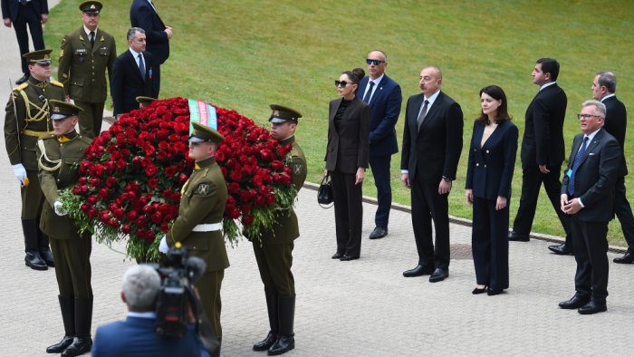 Azərbaycan Prezidenti İlham Əliyev və birinci xanım Mehriban Əliyeva Litvanın müstəqilliyi uğrunda həlak olanların xatirəsinə ucaldılmış abidəni ziyarət edib, önünə gül dəstələri qoyublar.