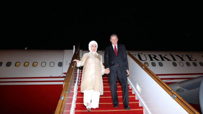 Türkiyə Prezidenti Rəcəb Tayyib Ərdoğanı və xanımı Əminə Ərdoğanı hava limanında Azərbaycan Respublikası Baş nazirinin birinci müavini Yaqub Eyyubov, xarici işlər nazirinin müavini Xələf Xələfov və digər rəsmi şəxslər qarşılayıblar.