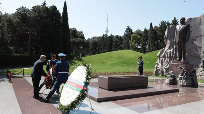 Bizim.Media xəbər verir ki, Məhəmməd Şahbaz Şərif xalqımızın Ümummilli Lideri, müasir müstəqil Azərbaycan dövlətinin memarı və qurucusu Heydər Əliyevin xatirəsini ehtiramla yad edib, abidəsi önünə əklil qoyub.