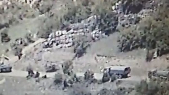 Sözügedən kadrlarda Xankəndi-Kərkicahan-Xəlfəli yolu ilə Rusiya sülhməramlı qüvvələrinin müşayiəti altında ermənilərin döyüş mövqelərinə təminat vasitələri daşınır.