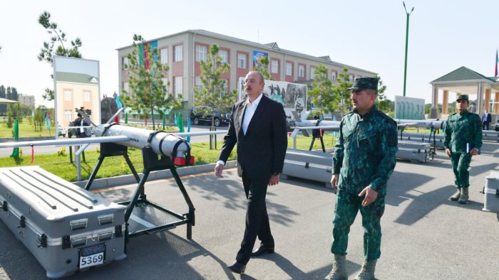 Dövlət başçısına, həmçinin “Qazax” Əlahiddə Sərhəd Diviziyasının xidməti istifadəsinə verilmiş silah arsenalı, döyüş texnikaları, yüksəkkeçidli nəqliyyat vasitələri, zirehli və avtomobil texnikası, tibb avtomobilləri nümayiş etdirilib.