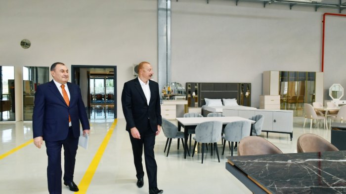 Dövlət başçısı “Venzana” mebel fabrikini işə saldı və istehsal prosesi ilə tanış olub.