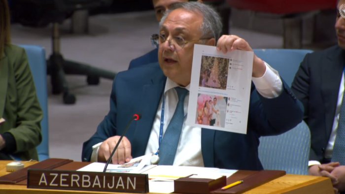 “Mənim BMT-nin Ali Məclisinə təqdim etmək istədiyim başqa bir məsələ də var. Sosial şəbəkələr yerli ermənilərin müxtəlif yubileyləri, toyları, ad günlərini və digər xoş hadisələri qeyd edən müxtəlif videolarla doludur”.