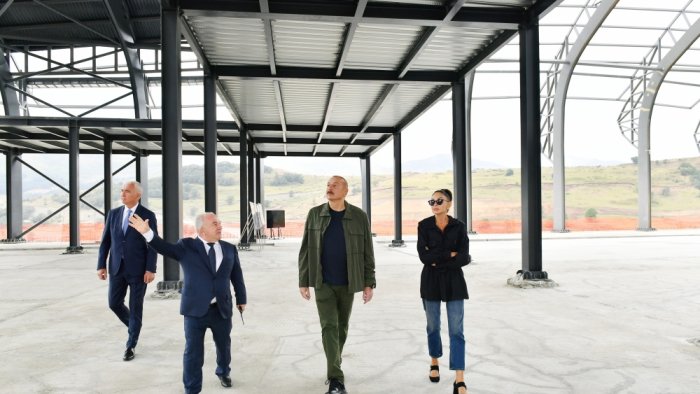 Dövlət başçısı və birinci xanım Laçın Beynəlxalq Hava Limanında tikinti işlərinin gedişi ilə tanış olublar.