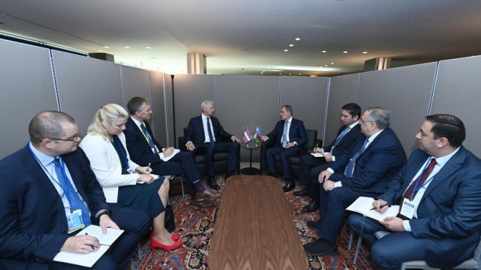 BMT Baş Assambleyasının 78-ci sessiyasının yüksək səviyyəli həftəsi çərçivəsində Azərbaycan Respublikasının xarici işlər naziri Ceyhun Bayramov Latviya Respublikasının xarici işlər naziri Krişyanis Karins ilə görüşüb.