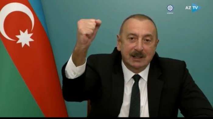 “Onu da bildirməliyəm, bizə xor baxanlar, torpağımıza göz tikənlər, uğurumuzu həzm edə bilməyənlər heç vaxt unutmasınlar ki, “dəmir yumruq” yerindədir və hər zaman yerində olacaq! Heç kim bizimlə diktat və ultimatum dili ilə danışa bilməz! Bunu heç kim unutmasın! Onu da unutmasın ki, Qarabağ Azərbaycandır!”.
