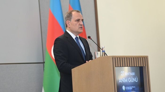Anım tədbirində çıxış edən Azərbaycan Respublikasının xarici işlər naziri Ceyhun Bayramov, müasir tariximizin ən şanlı səhifələrindən biri olan 44 günlük Vətən müharibəsi nəticəsində Ermənistanın 30 ilə yaxın hərbi işğalına son qoyulduğunu, ərazi bütövlüyümüz ilə yanaşı, tarixi ədalətin və beynəlxalq hüququn bərpa olunduğunu diqqətə çatdırıb.