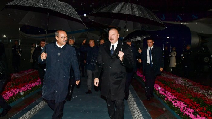 Azərbaycan Prezidentini Özbəkistanın Baş naziri Abdulla Aripov və digər rəsmi şəxslər qarşılayıblar.