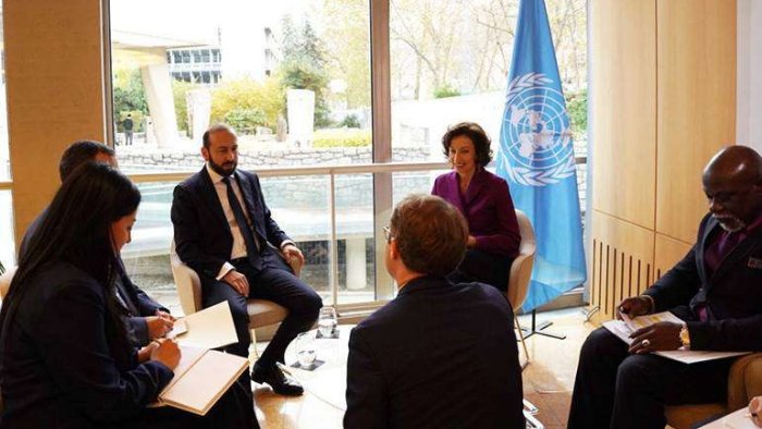 Bundan başqa Ermənistan XİN-in rəhbəri Ararat Mirzoyanın YUNESKO-nun baş direktoru Odri Azule arasında təkbətək görüş keçirilib. Görüşdə erməni nazir 21 min(?!) Qarabağ məktəblisinin təhsil almaq hüququnun reallaşdırılmasının vacibliyindən dəm vurub.