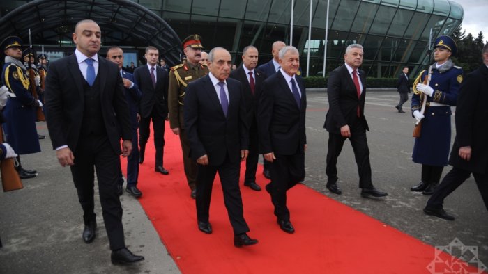 Bizim.Media xəbər verir ki, hər iki ölkənin Dövlət bayraqlarının dalğalandığı Heydər Əliyev Beynəlxalq Aeroportunda ali qonağın şərəfinə fəxri qarovul dəstəsi düzülüb.