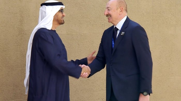 Birləşmiş Ərəb Əmirliklərinin Prezidenti Şeyx Məhəmməd bin Zayed Əl Nəhyan və BMT-nin Baş katibi Antonio Quterreş dövlət başçısını qarşılayıblar.