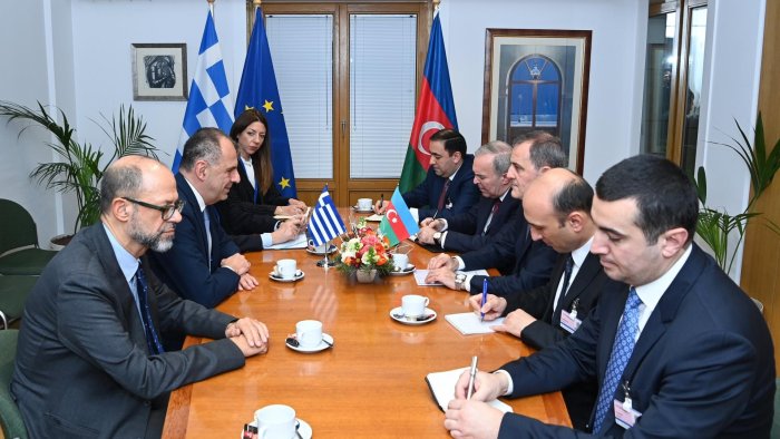 Görüşdə Nazir Ceyhun Bayramov təyinatı münasibətilə Yunanıstan nazirinə təbriklərini çatdırıb.