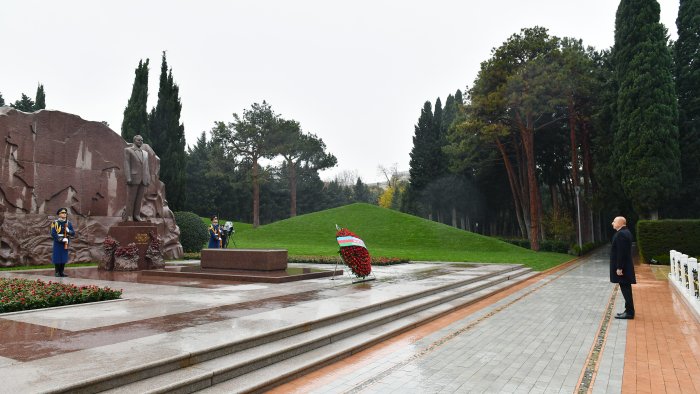 Prezident İlham Əliyev Ulu Öndərin məzarı önünə əklil qoyub.