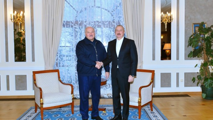 Azərbaycan prezidenti İlham Əliyev Sankt-Peterburqda Belarus prezidenti Aleksandr Lukaşenko ilə görüşüb.