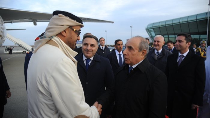 Birləşmiş Ərəb Əmirliklərinin Prezidenti Şeyx Məhəmməd bin Zayed Əl Nəhyanı Azərbaycan Respublikası Baş nazirinin birinci müavini Yaqub Eyyubov, xarici işlər nazirinin müavini Yalçın Rəfiyev və digər rəsmi şəxslər qarşılayıblar.