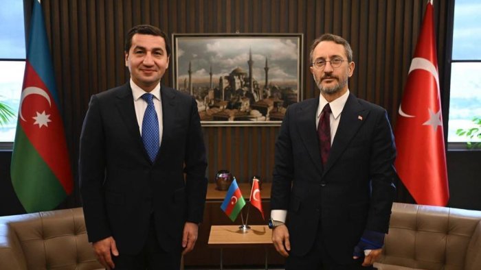 Azərbaycan Prezidentinin köməkçisi - Prezident Administrasiyasının Xarici siyasət məsələləri şöbəsinin müdiri Hikmət Hacıyev Türkiyə Prezidenti Administrasiyasının Kommunikasiya İdarəsinin rəhbəri Fəxrəddin Altunla görüşüb.