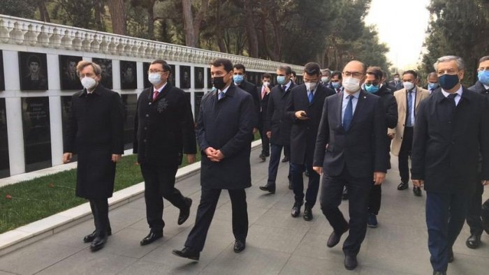 Daha sonra toplantı iştirakçıları Şəhidlər xiyabanında şəhid türk əsgərlərinin xatirəsinə ucaldılmış “Türk Şəhidliyi” abidəsi önünə gül dəstələri qoyublar.