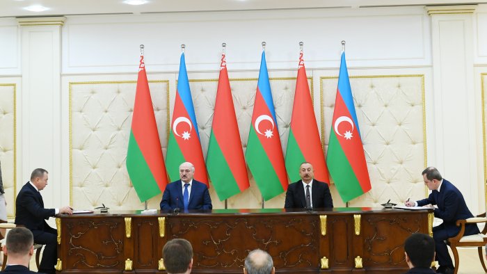Azərbaycan və Belarus prezidentləri mətbuata bəyanatlarla çıxış ediblər