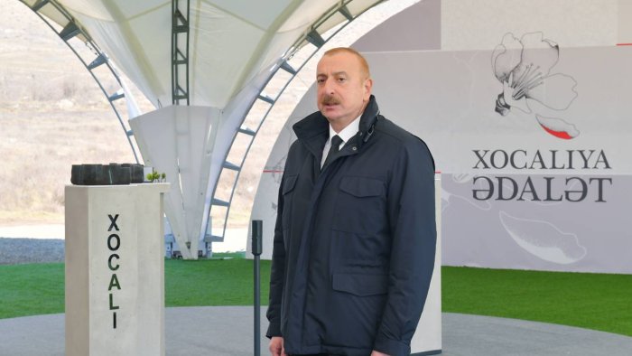 “Bu gün biz buradayıq (Xocalı – red.), burada olmağımız tarixi ədalətin tam bərpası deməkdir. Bu gün Xocalı qurbanlarının ruhu şaddır”.