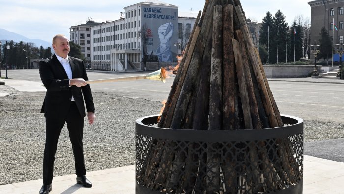“Dördüncü dəfədir ki, mən bayram tonqalını azad edilmiş Qarabağ torpağında qalayıram. 2021-ci ildə Şuşada, 2022-ci ildə Suqovuşanda, keçən il Talış kəndində, bu dəfə isə Xankəndi şəhərində bayram tonqalı qalanır”.