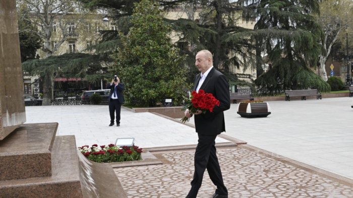 Bizim.Media xəbər verir ki, dövlətimizin başçısı Ümummilli Lider Heydər Əliyevin Gəncə şəhərinin mərkəzində ucaldılmış abidəsini ziyarət edib, önünə gül dəstəsi qoyub.