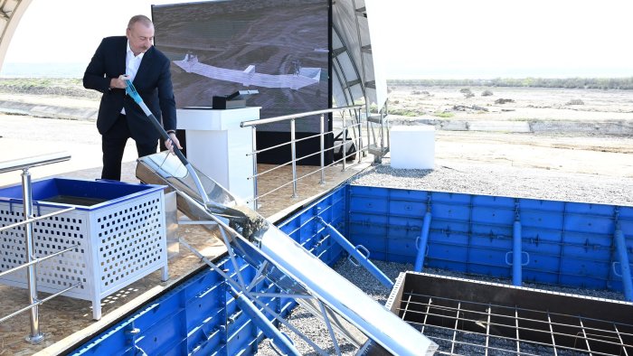 Prezident İlham Əliyev yenidən qurulacaq Şirvan suvarma kanalının təməlini qoyub.