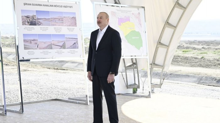 Prezident Şirvan suvarma kanalının təməlini qoydu - FOTO/VİDEO