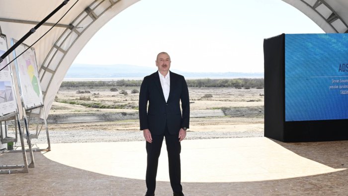 Prezident Şirvan suvarma kanalının təməlini qoydu - FOTO/VİDEO