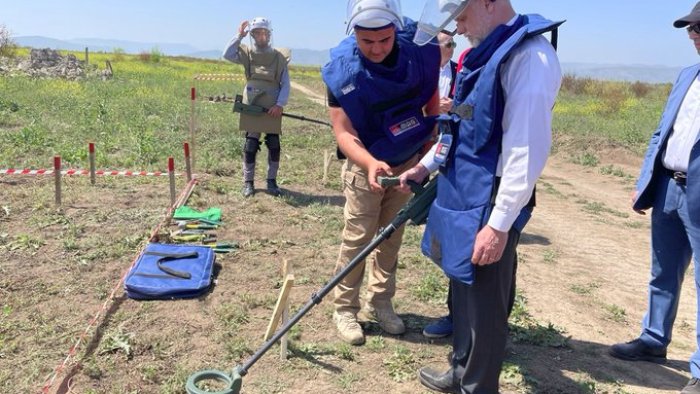 Səfir Libby Ağdamda səfərdə ikən Azərbaycanın cəsarətli minatəmizləyicilərinin köçkün icmaların təhlükəsiz qayıtmasına şərait yaradan minaların aşkar edilməsi və zərərsizləşdirilməsi üçün gördükləri mühüm işləri müşahidə edib.