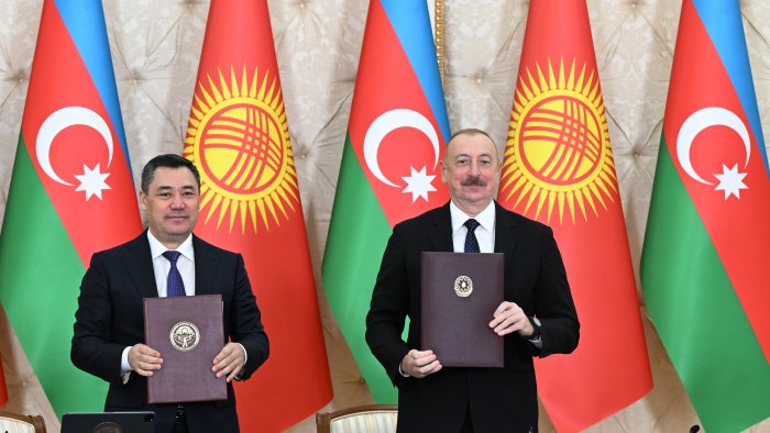 Bizim.Media xəbər verir ki, Azərbaycan Respublikasının Prezidenti İlham Əliyev və Qırğız Respublikasının Prezidenti Sadır Japarov “Azərbaycan Respublikası və Qırğız Respublikasının Dövlətlərarası Şurasının ikinci iclasının Qərarı”nı və “Azərbaycan Respublikasının Prezidenti İlham Əliyevin və Qırğız Respublikasının Prezidenti Sadır Japarovun Birgə Bəyannaməsi”ni imzalayıblar.