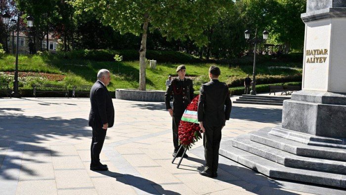 Baş nazir Əli Əsədov Ümummilli Lider Heydər Əliyevin abidəsi önünə əklil qoyub.