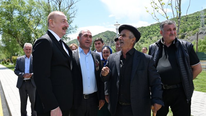 Sonra Prezident İlham Əliyev kəndə köçmüş sakinlərlə görüşdü.
