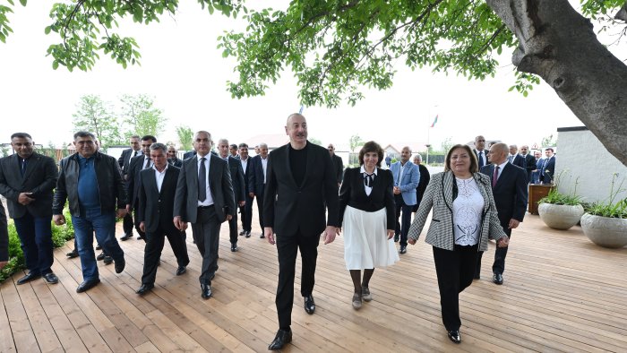 Bizim.Media xəbər verir ki, dövlətimizin başçısı və birinci xanım əvvəlcə sakinlərlə söhbət ediblər.
