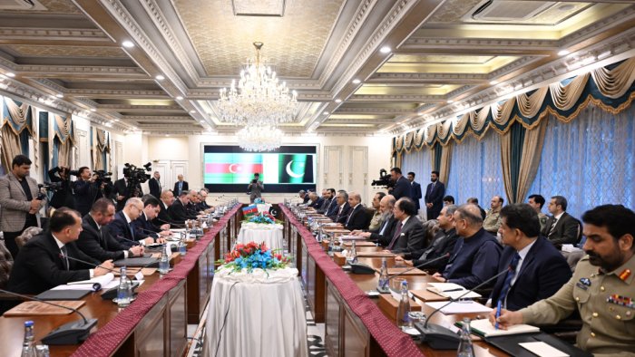 İslamabadda Azərbaycan Respublikasının Prezidenti İlham Əliyevin Pakistan İslam Respublikasının Baş naziri Məhəmməd Şahbaz Şərif ilə geniş tərkibdə görüşü keçirilib.