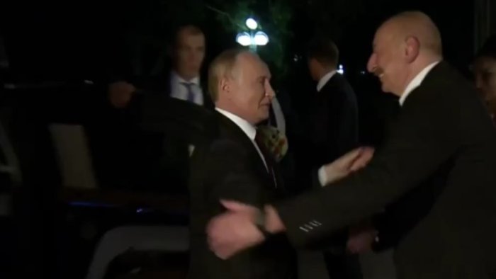 Bizim.Media xəbər verir ki, Kremlin sahibini Azərbaycan Prezidenti İlham Əliyev və birinci xanım Mehriban Əlyeva qarşılayıblar.