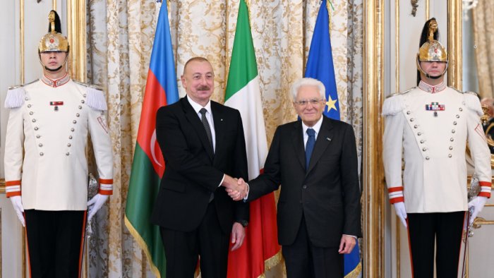 Bizim.Media xəbər verir ki, Romanın “Quirinale” Sarayında Prezident İlham Əliyevin şərəfinə fəxri qarovul dəstəsi düzülmüşdü.