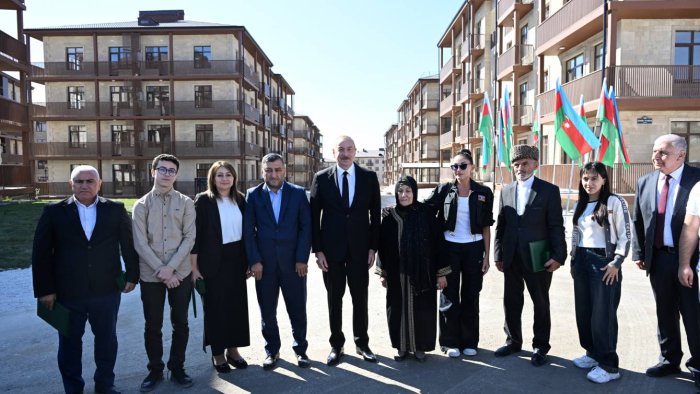 Ona görə bu gözəl binalarda yaşamaq sizin haqqınızdır, siz buna layiqsiniz. Əminəm ki, bu torpaqlarda yaşamış və oradan köçmüş, eyni zamanda, bu torpaqları heç vaxt görməmiş sizin uşaqlarınız, nəvələriniz burada rahat və xoşbəxt yaşayacaq, öz dövləti ilə, xalqı ilə həmişə fəxr edəcəkdir. Bir daha sizi təbrik edirəm.