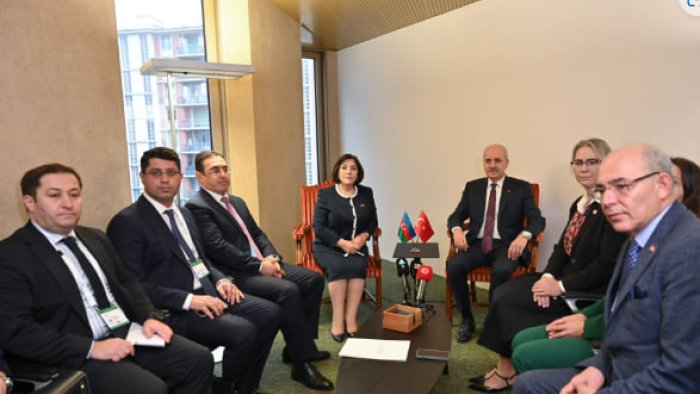 İsveçrənin Cenevrə şəhərində işgüzar səfərdə olan Milli Məclisin sədri Sahibə Qafarova burada Türkiyə Böyük Millət Məclisinin sədri Numan Kurtulmuşla görüşüb.