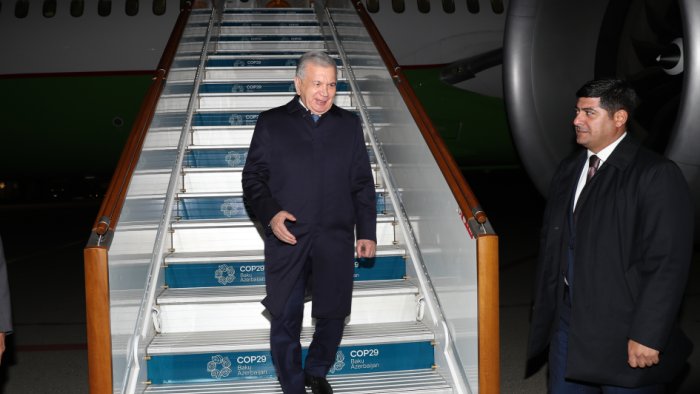 Özbəkistan Respublikasının Prezidenti Şavkat Mirziyoyev noyabrın 11-də BMT-nin İqlim Dəyişmələri üzrə Çərçivə Konvensiyasının Tərəflər Konfransının 29-cu sessiyasında (COP29) iştirak etmək məqsədilə Azərbaycan Respublikasına səfərə gəlib.