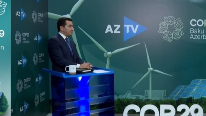 Azərbaycan Respublikası Prezidentinin köməkçisi - Prezident Administrasiyasının Xarici siyasət məsələləri şöbəsinin müdiri Hikmət Hacıyev Azərbaycan Televiziyasına açıqlamasında Ermənistanın COP29-da iştirak etməməsi məsələsinə toxunub.