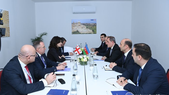 Azərbaycanın xarici işlər naziri Ceyhun Bayramov ATƏT-in Nazirlər Şurasının 31-ci iclasında iştirakı çərçivəsində Gürcüstanın xarici işlər naziri Maka Botçorişvili ilə görüşüb.